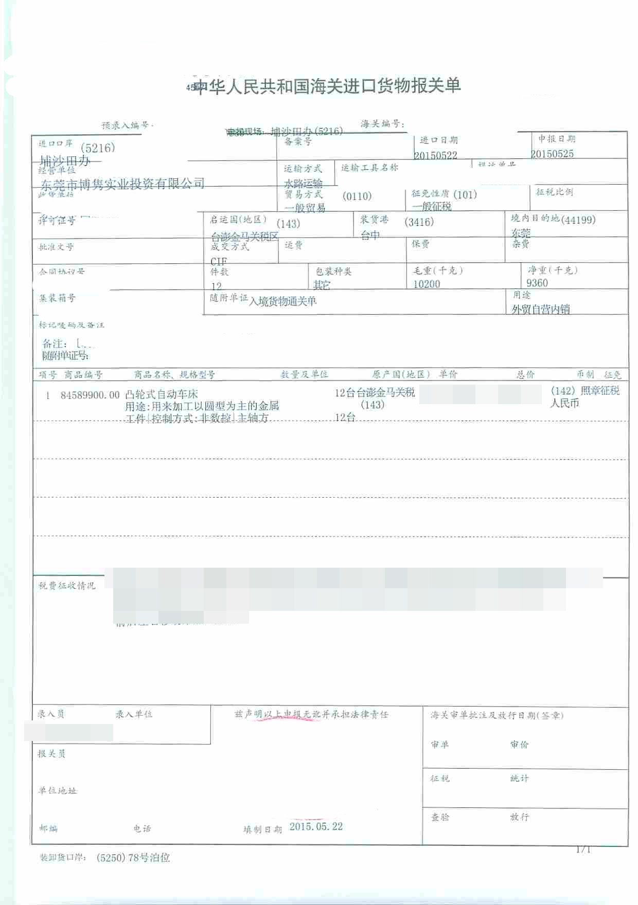 三、自動(dòng)車床進(jìn)口報(bào)關(guān)案例展示