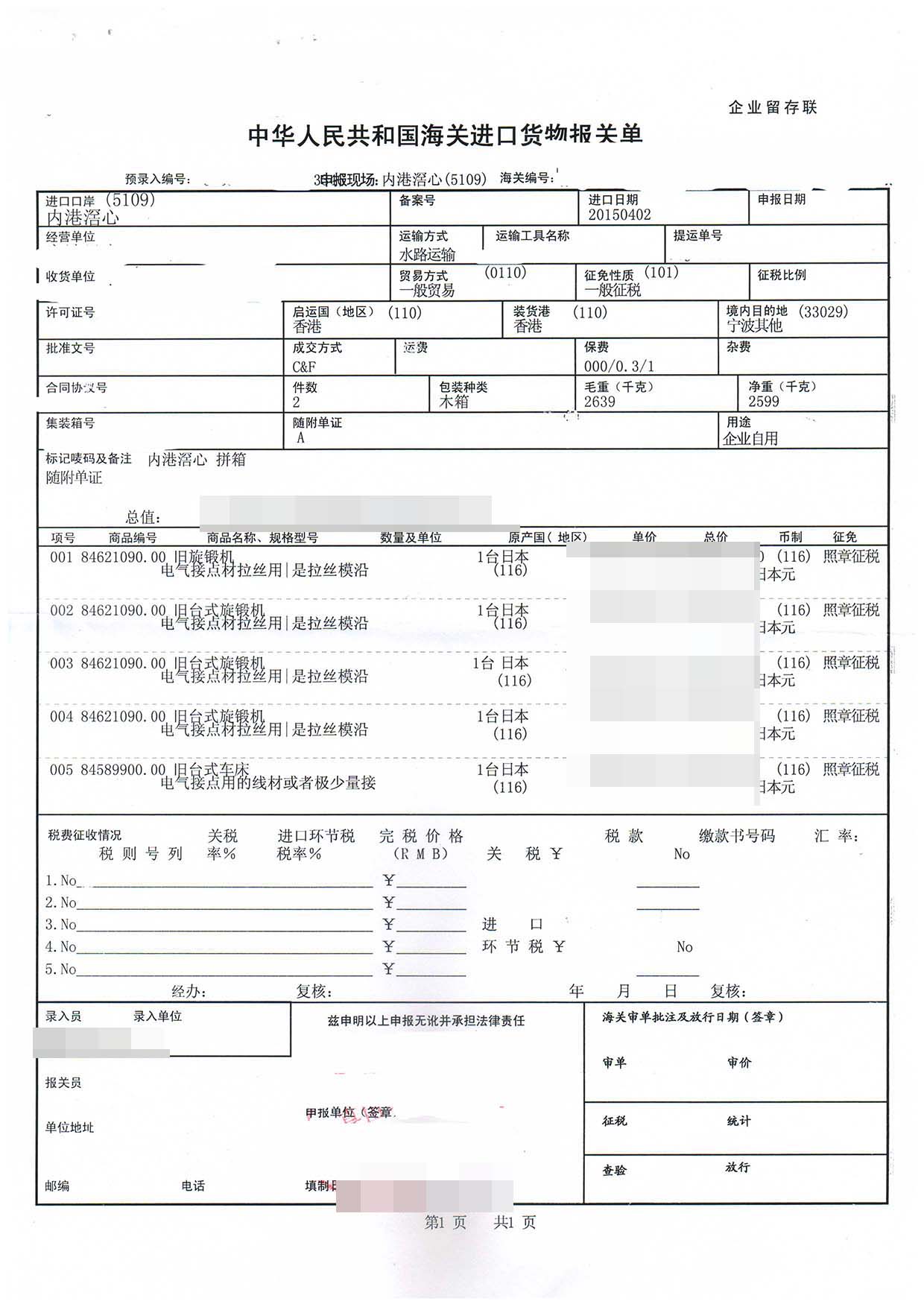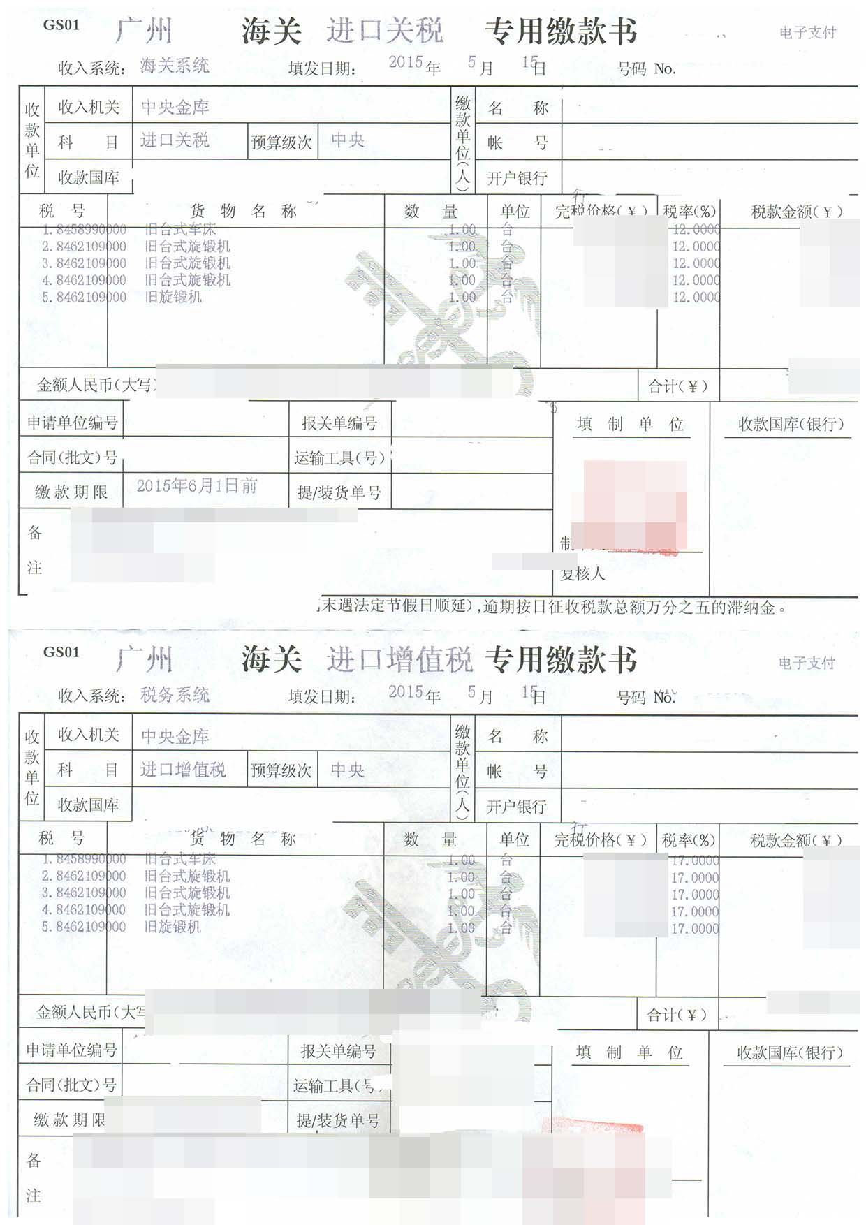 四、舊旋鍛機(jī)進(jìn)口報(bào)關(guān)案例展示