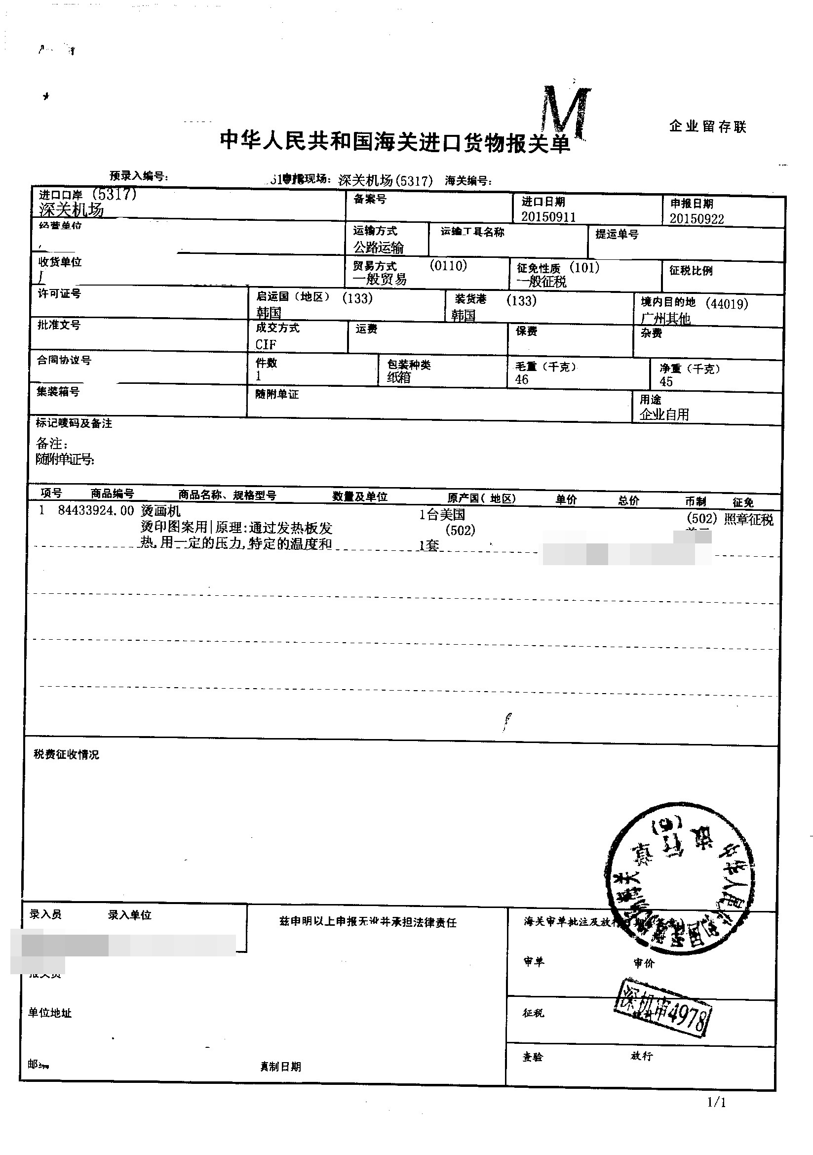 一、燙畫機(jī)進(jìn)口報(bào)關(guān)手續(xù)
