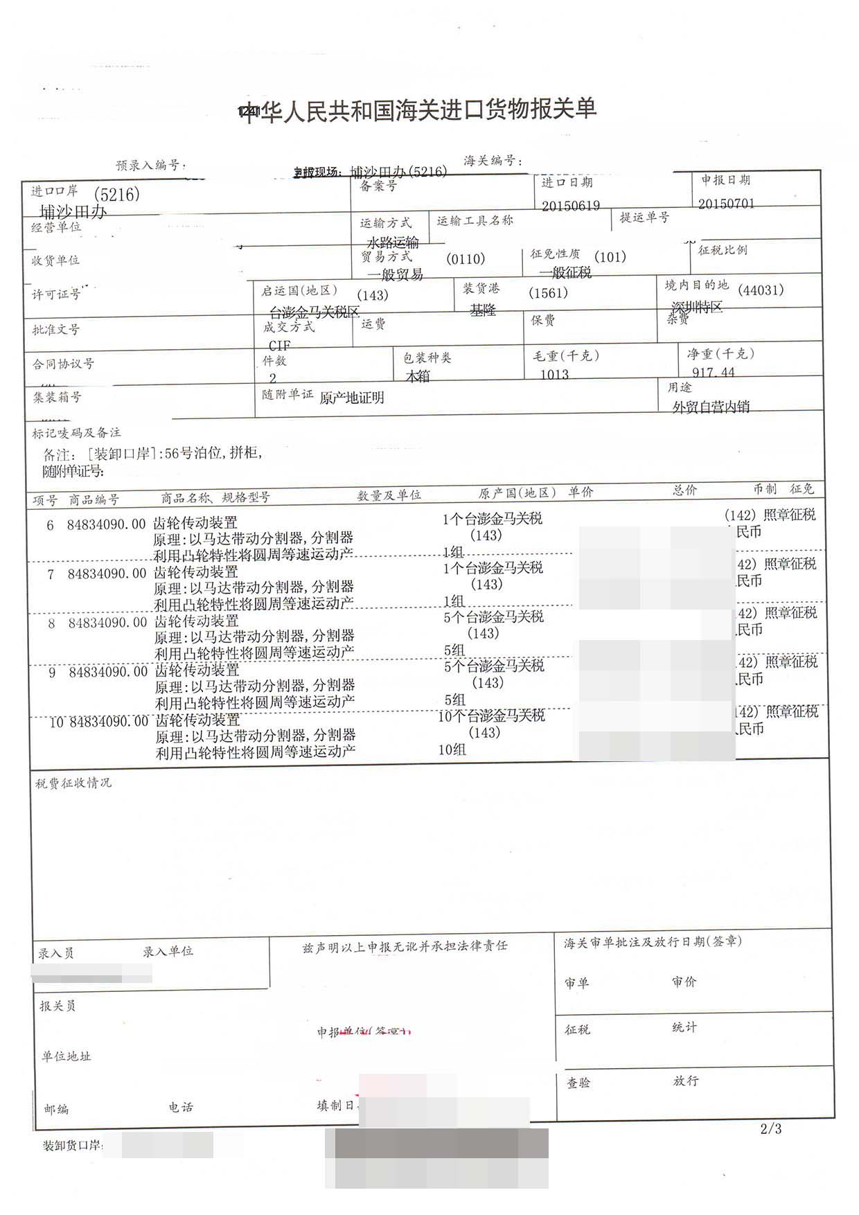 三、齒輪傳動(dòng)裝置進(jìn)口報(bào)關(guān)案例展示