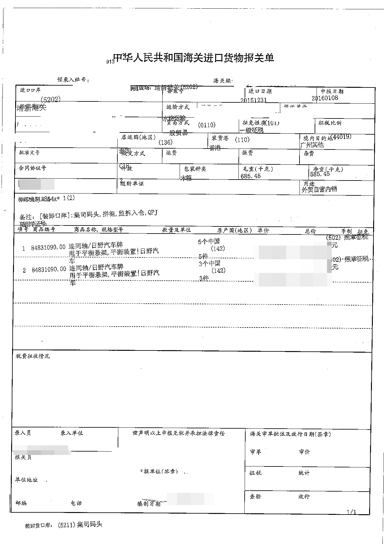 三、連同軸進(jìn)口報(bào)關(guān)案例展示