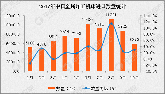 博裕機(jī)械進(jìn)口報(bào)關(guān)行了解到,2017年10月中國(guó)金屬加工機(jī)床進(jìn)口量為5870臺(tái),同比增長(zhǎng)29.9%。2017年1-10月中國(guó)金屬加工機(jī)床進(jìn)口量為72695臺(tái),與去年同期相比增長(zhǎng)24.8%。