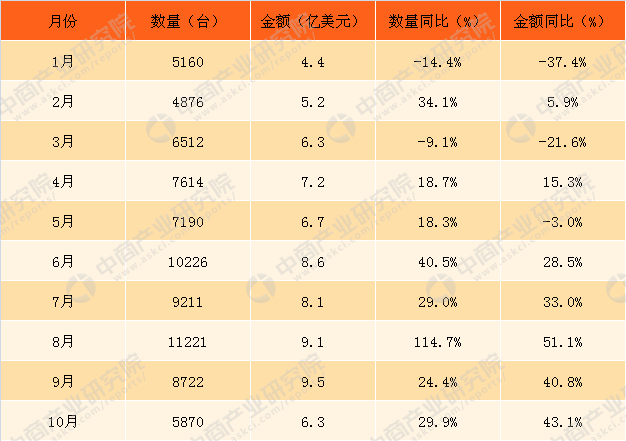 2017年1-10月中國(guó)金屬加工機(jī)床進(jìn)口情況一覽表